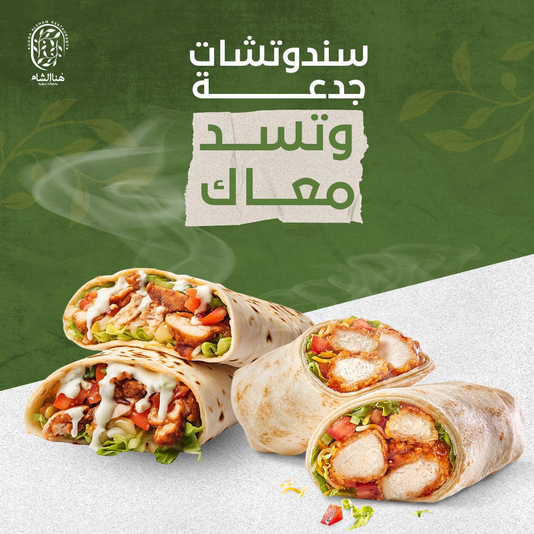 سلسلة مطاعم هنا الشام للمأكولات السورية بجميع أنواعها و بأيادي سورية ١٠٠٪ و بأعلي جودة و أفضل الأسعار